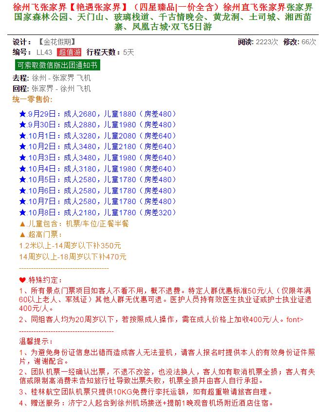 艷遇張家界雙飛5日游 2020-9-23 本文被閱讀 1717 次
