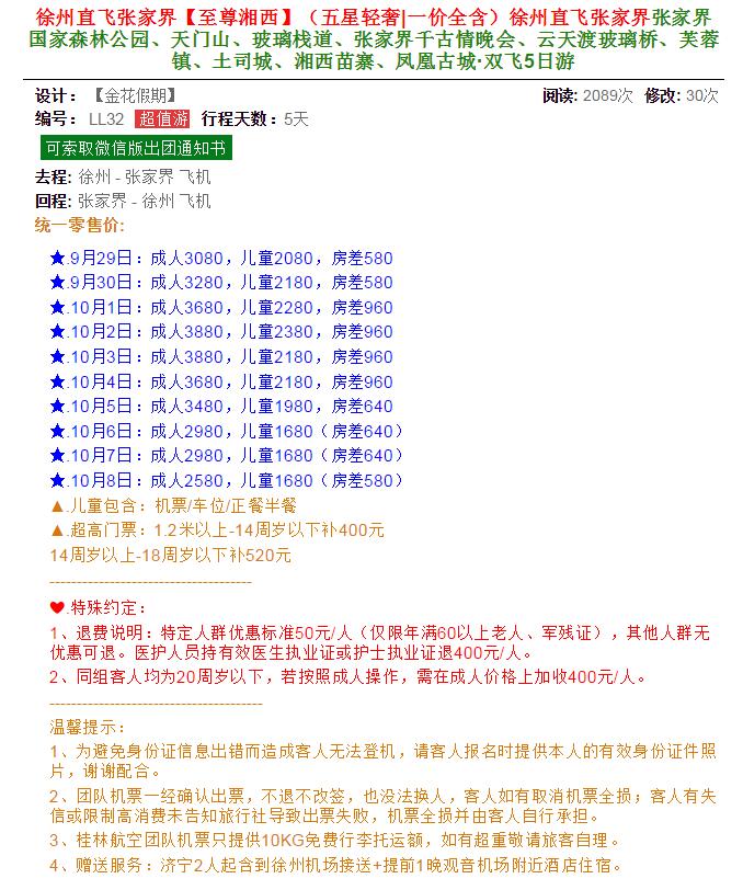 至尊湘西張家界雙飛5日游 2020-9-23 本文被閱讀 1633 次