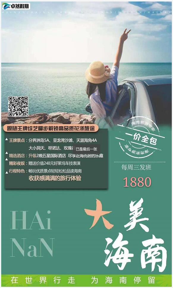 大美海南雙飛6日游 2020-10-5 本文被閱讀 2387 次