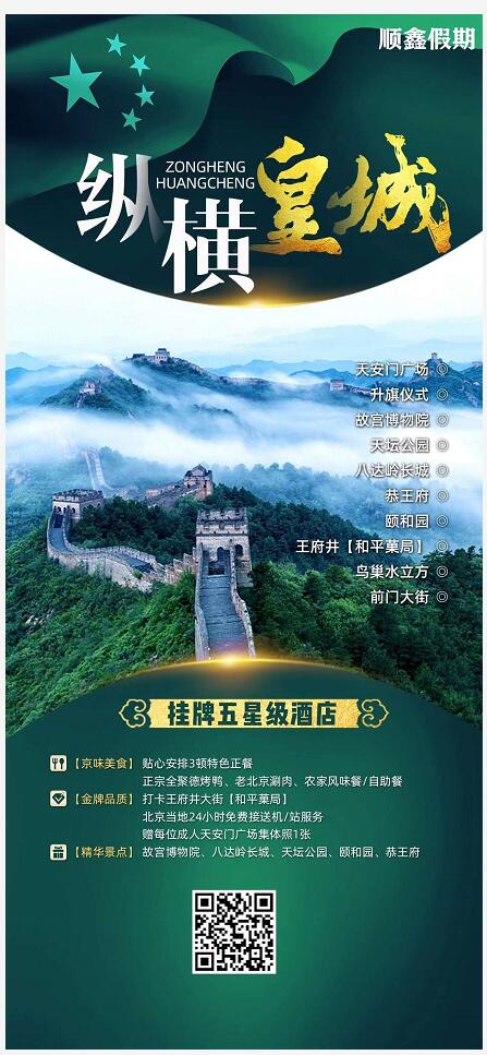 【縱橫皇城】—尊享五星酒店住宿+三個(gè)特色餐全聚德烤鴨、老北京涮羊肉、農(nóng)家菜風(fēng)味餐雙高四日游 2020-10-10 本文被閱讀 2285 次