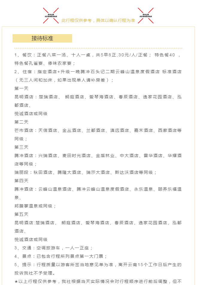提示:報(bào)名選擇正規(guī)旅游合法資質(zhì)的旅行社,并簽訂全國統(tǒng)一電子旅游合同微信1:992345533微信2:15705475533 微信3:13792310010電話:2345566/2345544/2345599/2345533/2345511