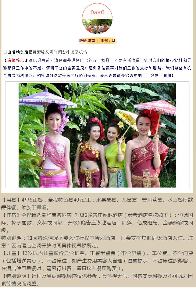 云之藍(山東成團)純玩-九點版納PLUS版~西雙版納直飛6日深度游