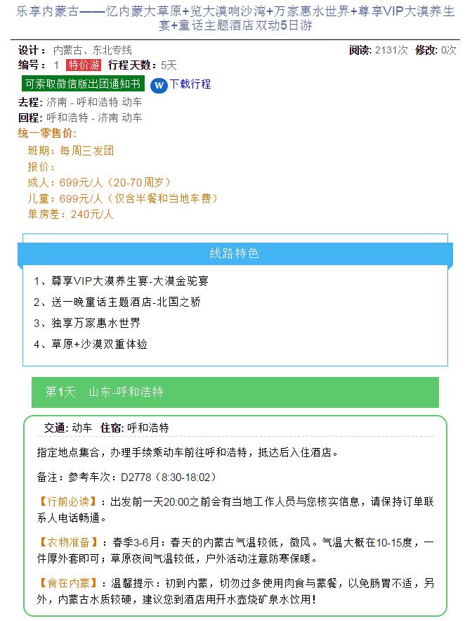樂享內(nèi)蒙古——憶內(nèi)蒙大草原+覽大漠響沙灣+萬家惠水世界+尊享VIP大漠養(yǎng)生宴+童話主題酒店雙動(dòng)5日游 2021-3-23 本文被閱讀 1813 次