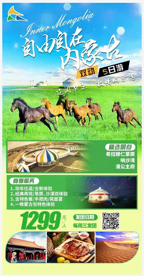 自由自在內(nèi)蒙古——遼闊草原、激情響沙灣雙動5日游
