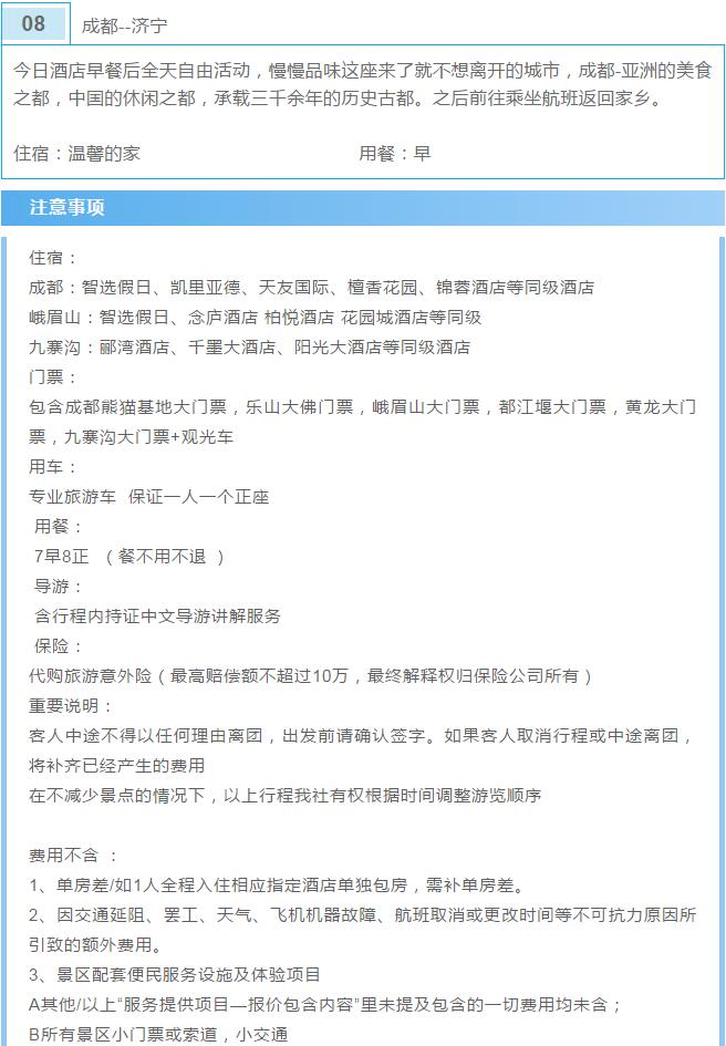 全景四川成都雙飛八日游