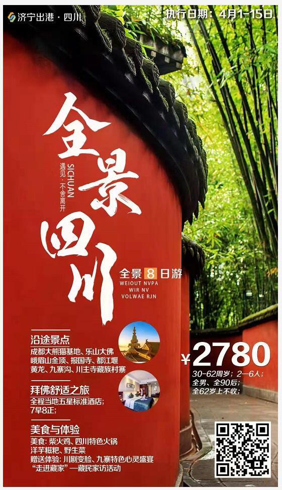 全景四川成都雙飛八日游 2021-4-12 本文被閱讀 1826 次