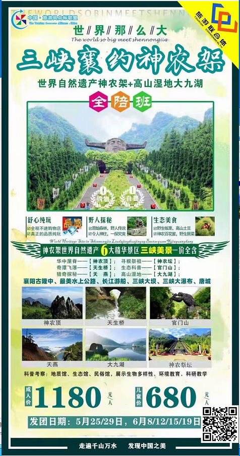 【三峽襄約神農(nóng)架】襄陽古隆中、神農(nóng)架全景、大九湖、天燕景區(qū)、神農(nóng)頂、神農(nóng)祭壇、官門山,天生橋、三峽大壩、三峽大瀑布、唐城夜游純玩豪華6日游 2021-5-26 本文被閱讀 1905 次