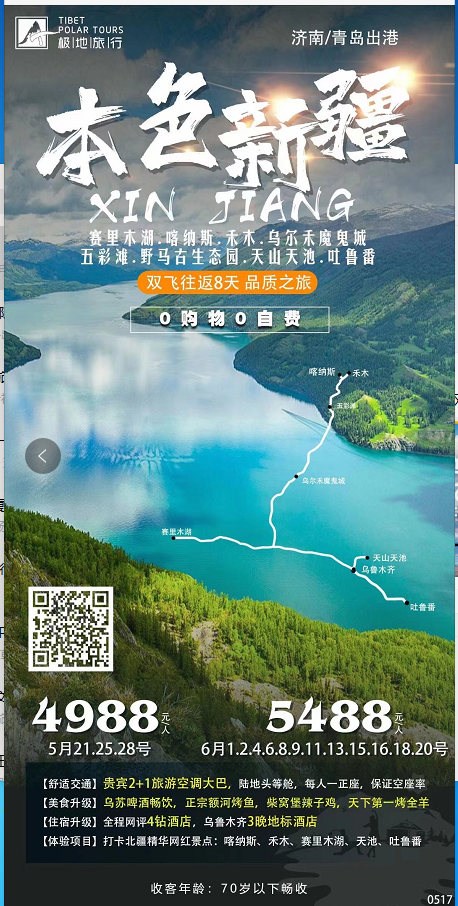 本色新疆純玩雙飛8日游 2021-5-27 本文被閱讀 1814 次