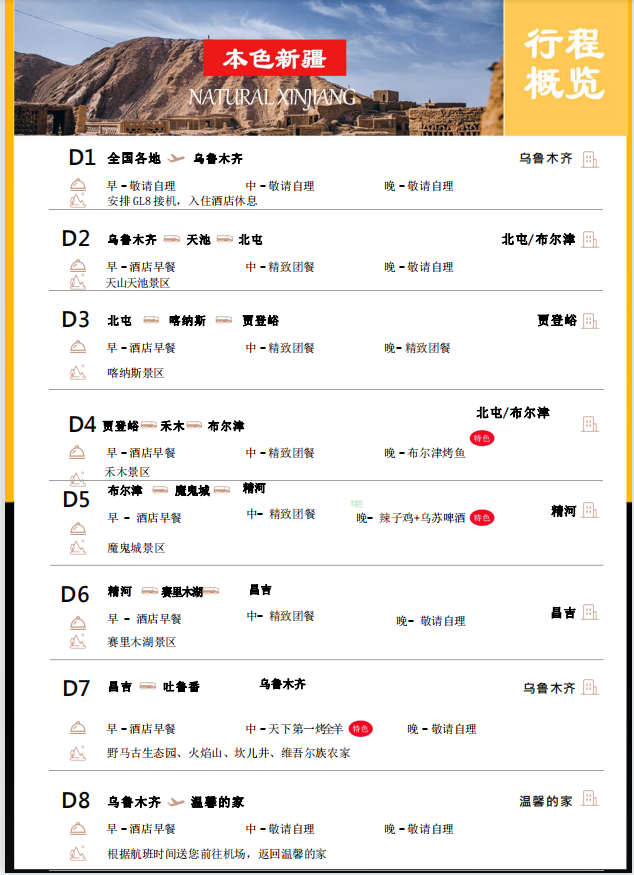 本色新疆純玩雙飛8日游