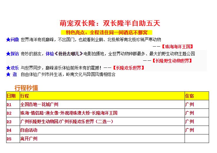 萌寵雙長隆半自由行雙飛五日