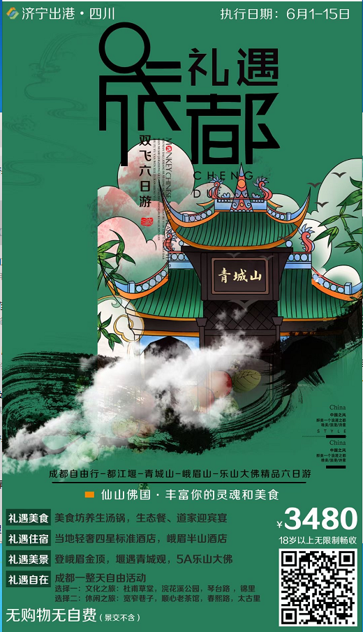 禮遇成都雙飛6日游 2021-6-8 本文被閱讀 1813 次