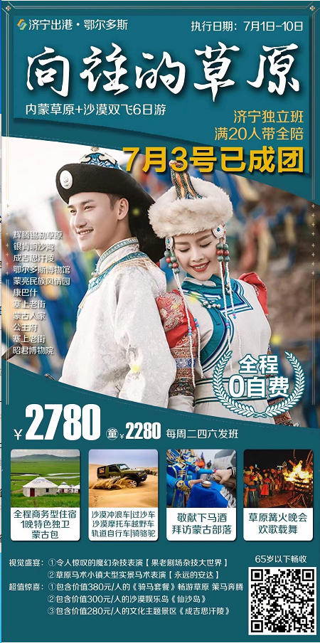 向往的草原輝騰錫勒草原|銀肯響沙灣|成吉思汗陵雙飛六日游