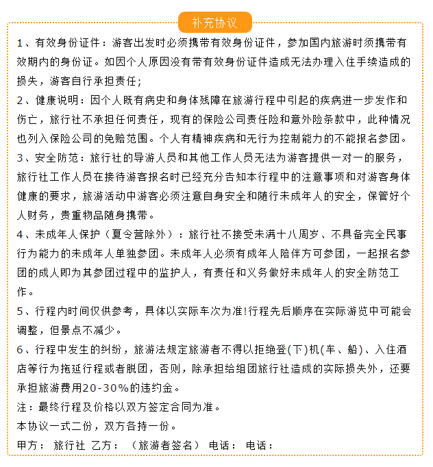 提示:報名選擇正規(guī)旅游合法資質(zhì)的旅行社,并簽訂全國統(tǒng)一電子旅游合同