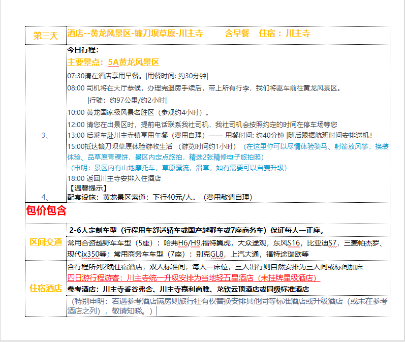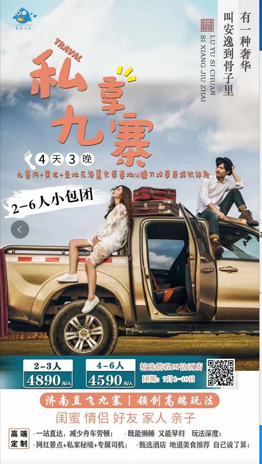 私享九寨雙飛4日游