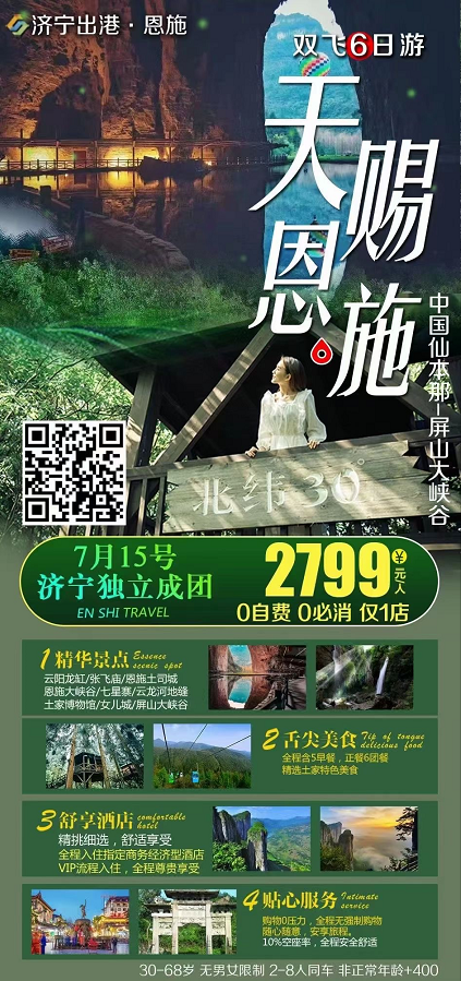 天賜恩施雙飛6日游 2021-7-9 本文被閱讀 1679 次