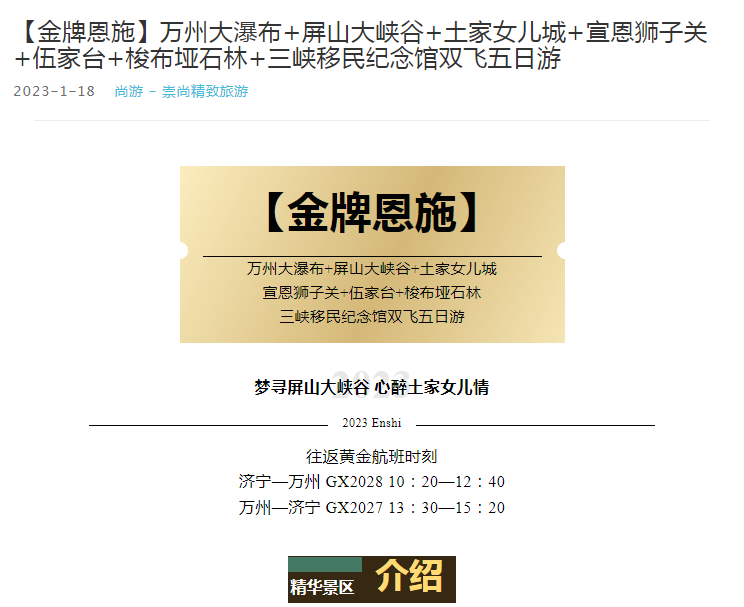 【全陪恩施】萬州大瀑布+屏山大峽谷+土家女兒城+宣恩獅子關(guān)+伍家臺雙飛五日游 2023-1-30 本文被閱讀 1401 次