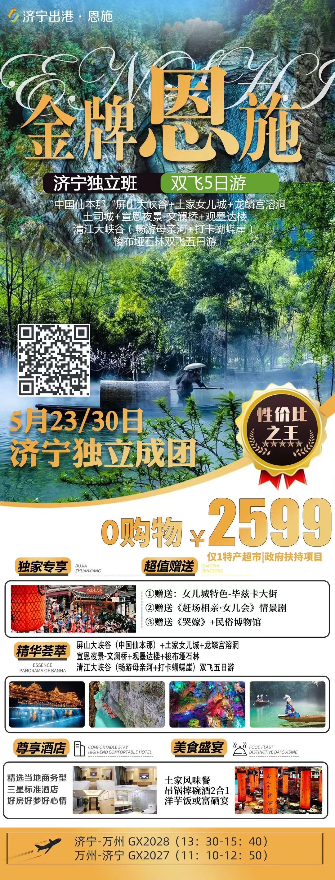 濟(jì)寧獨立班恩施大峽谷雙飛5日游 2023-5-19 本文被閱讀 1659 次