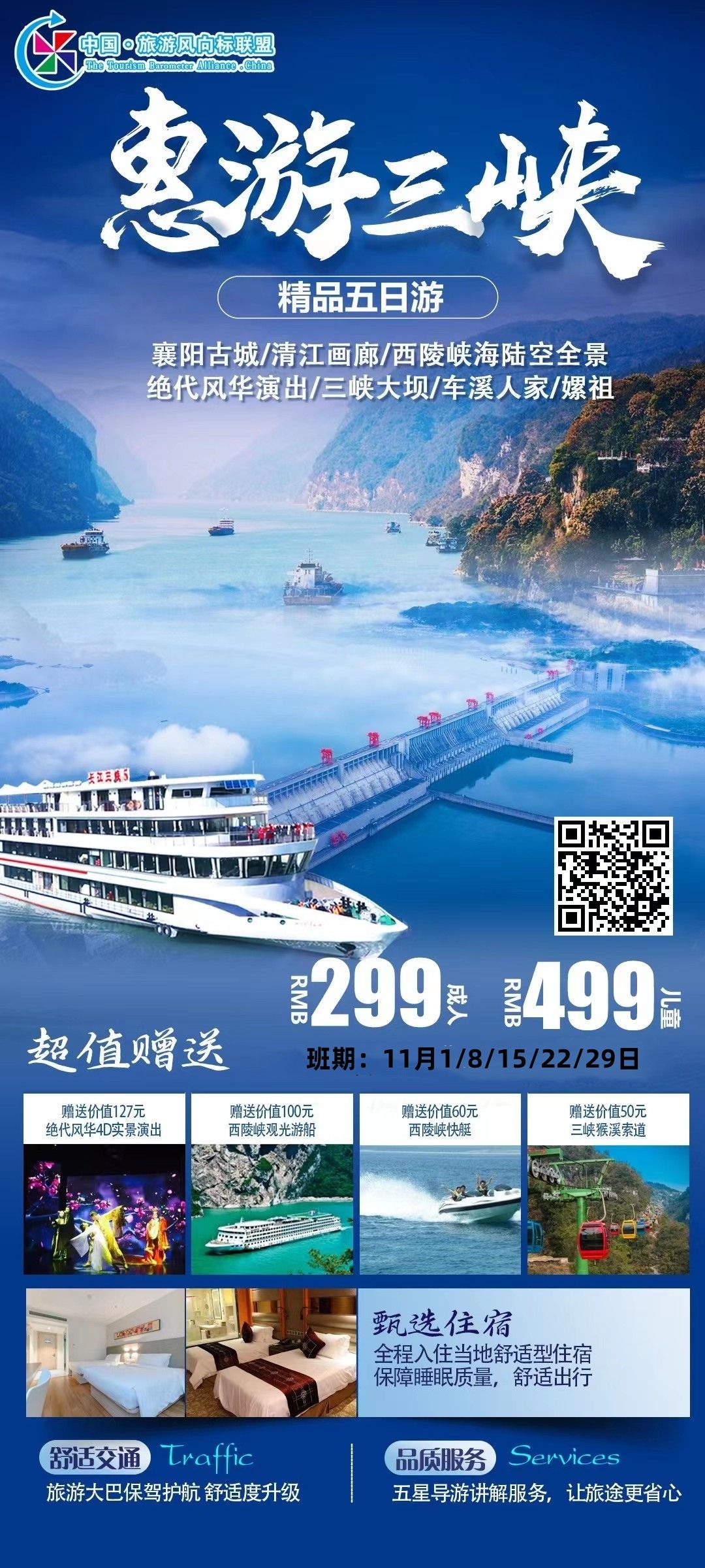 299元惠游三峽大巴五日游 2023-10-30 本文被閱讀 1052 次