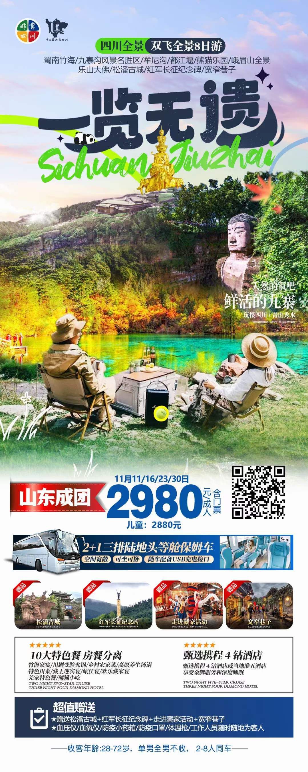 全‮四景‬川一覽無遺全陪班雙飛8日游 山東成團