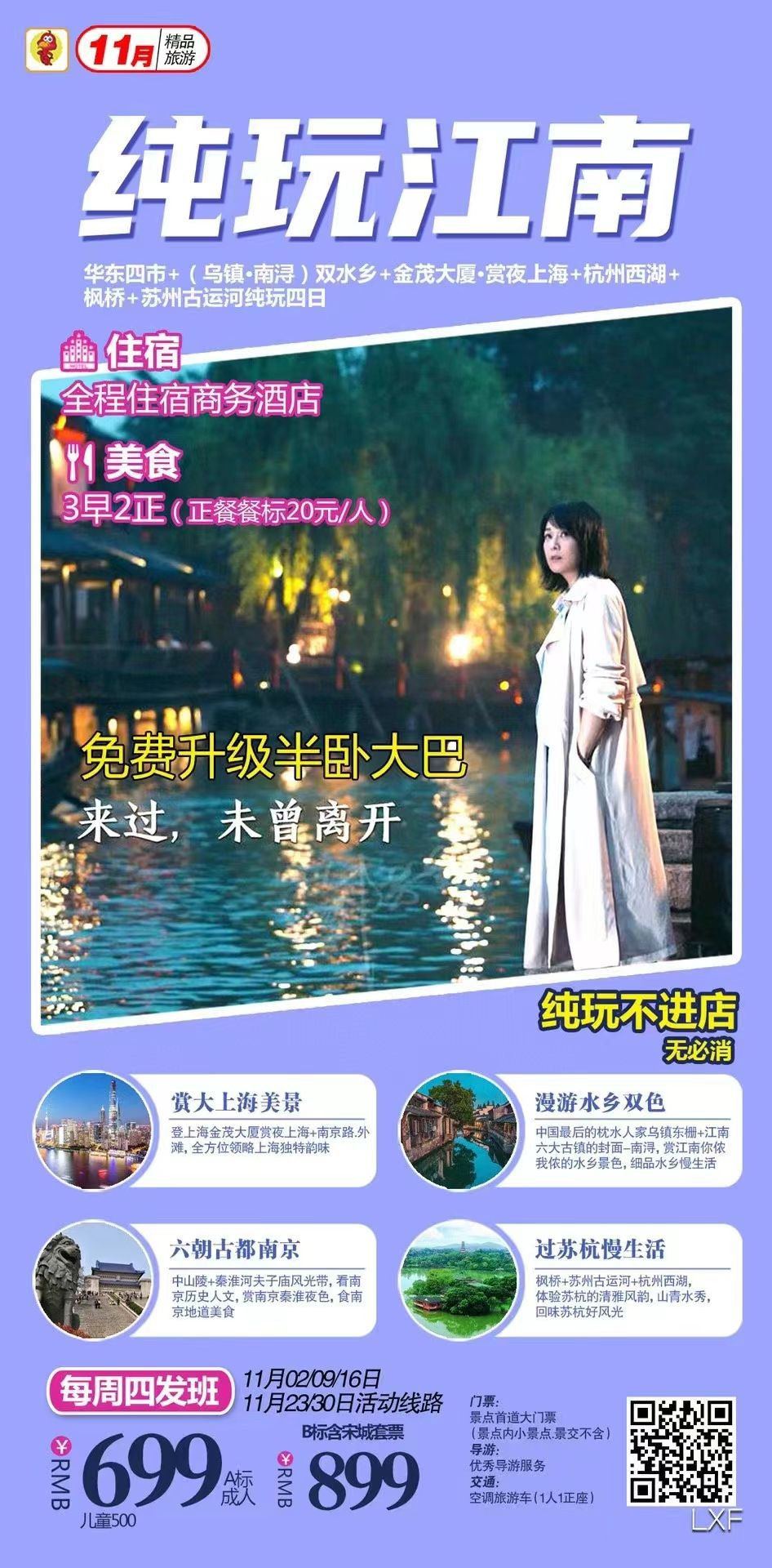 純玩江南半臥大巴四日游