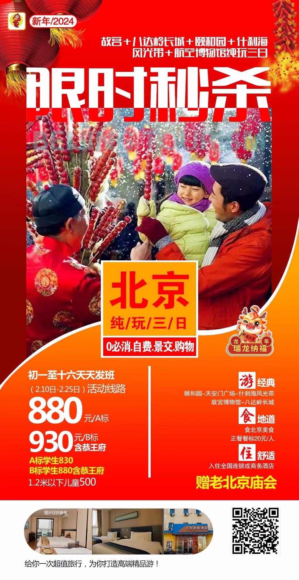 春節(jié)北京特價(jià)大巴三日游 2024-2-1 本文被閱讀 770 次