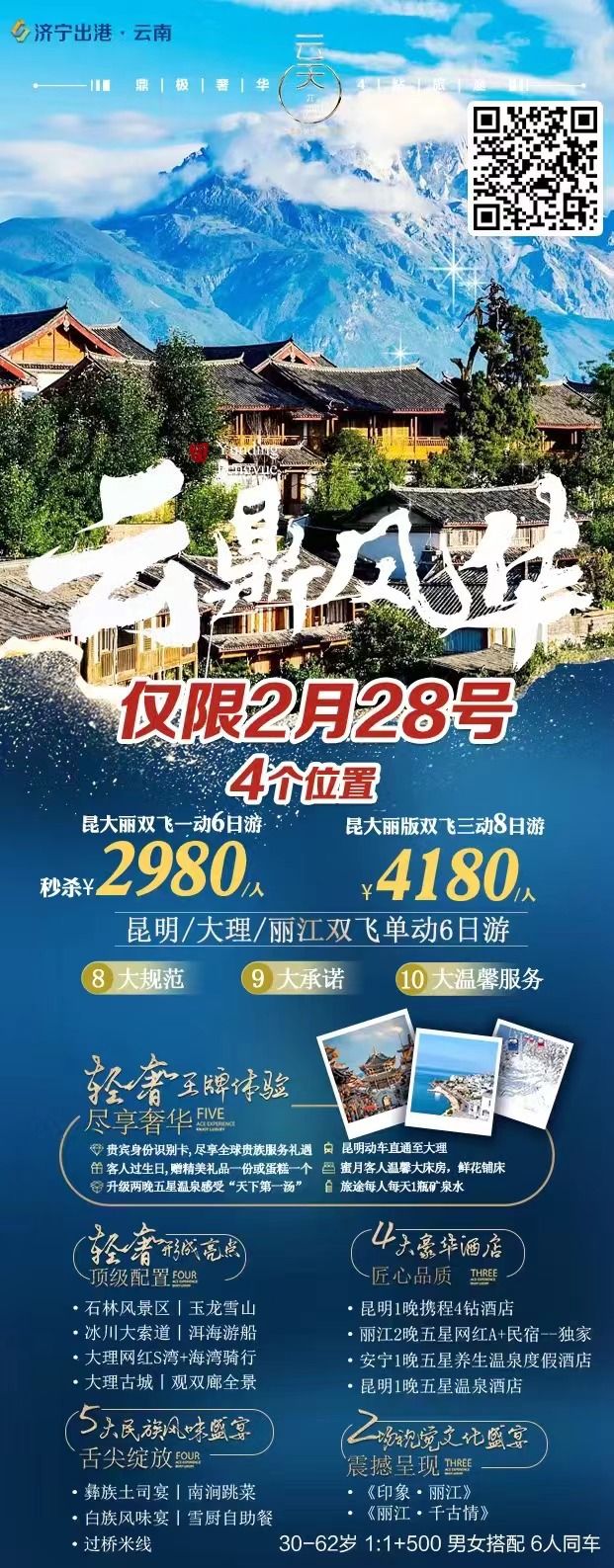 濟(jì)寧起止 云南雙飛六日游2980元 2024-2-18 本文被閱讀 647 次