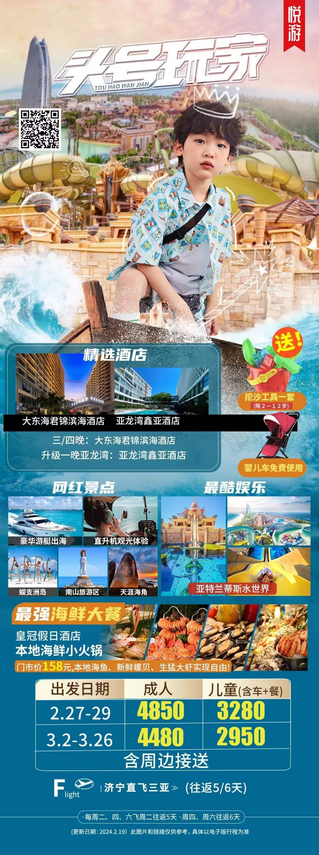 三亞頭號(hào)玩家雙飛5/6日游 2024-3-13 本文被閱讀 627 次