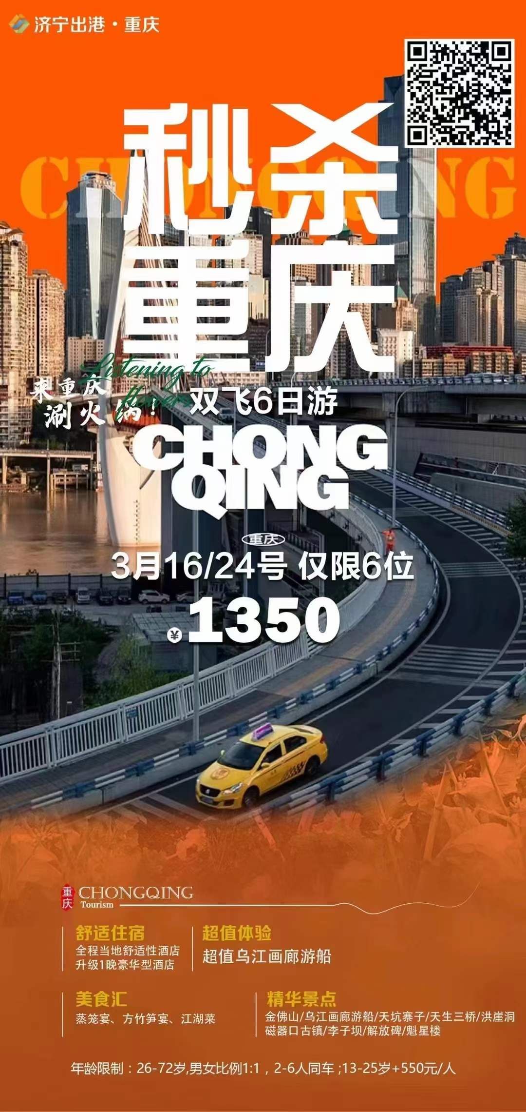 1350元特價重慶雙飛五日游 2024-3-13 本文被閱讀 697 次