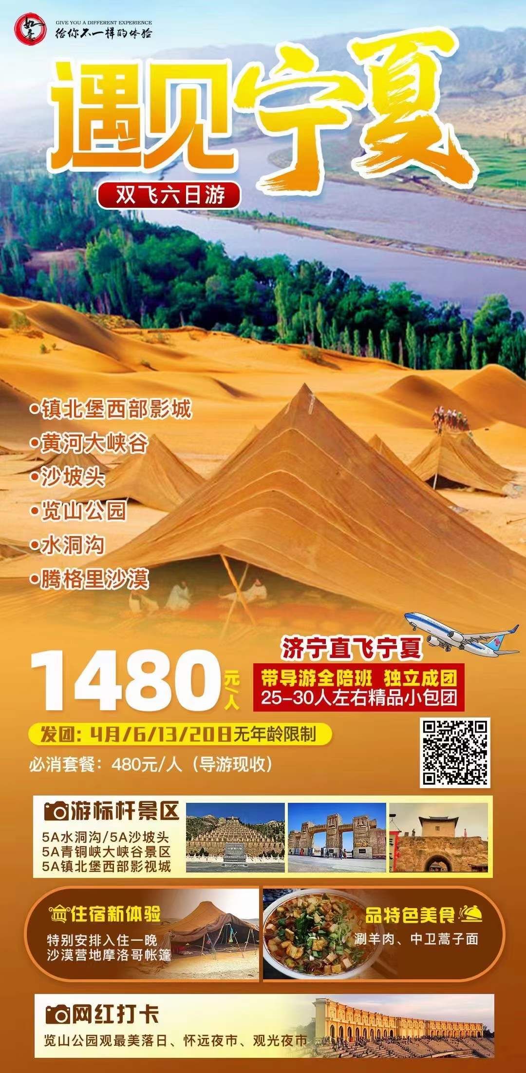 1480元濟(jì)寧直飛銀川遇‮寧見(jiàn)‬夏雙‮六飛‬日游