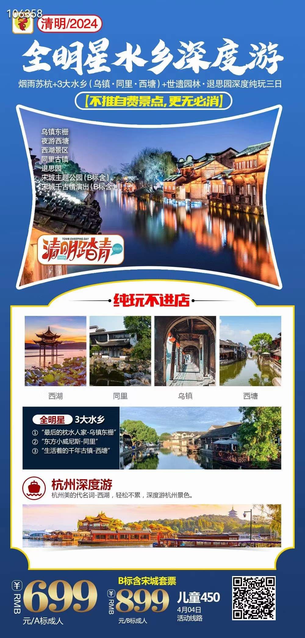 清明假期全明星蘇杭大巴三日游 2024-4-1 本文被閱讀 860 次