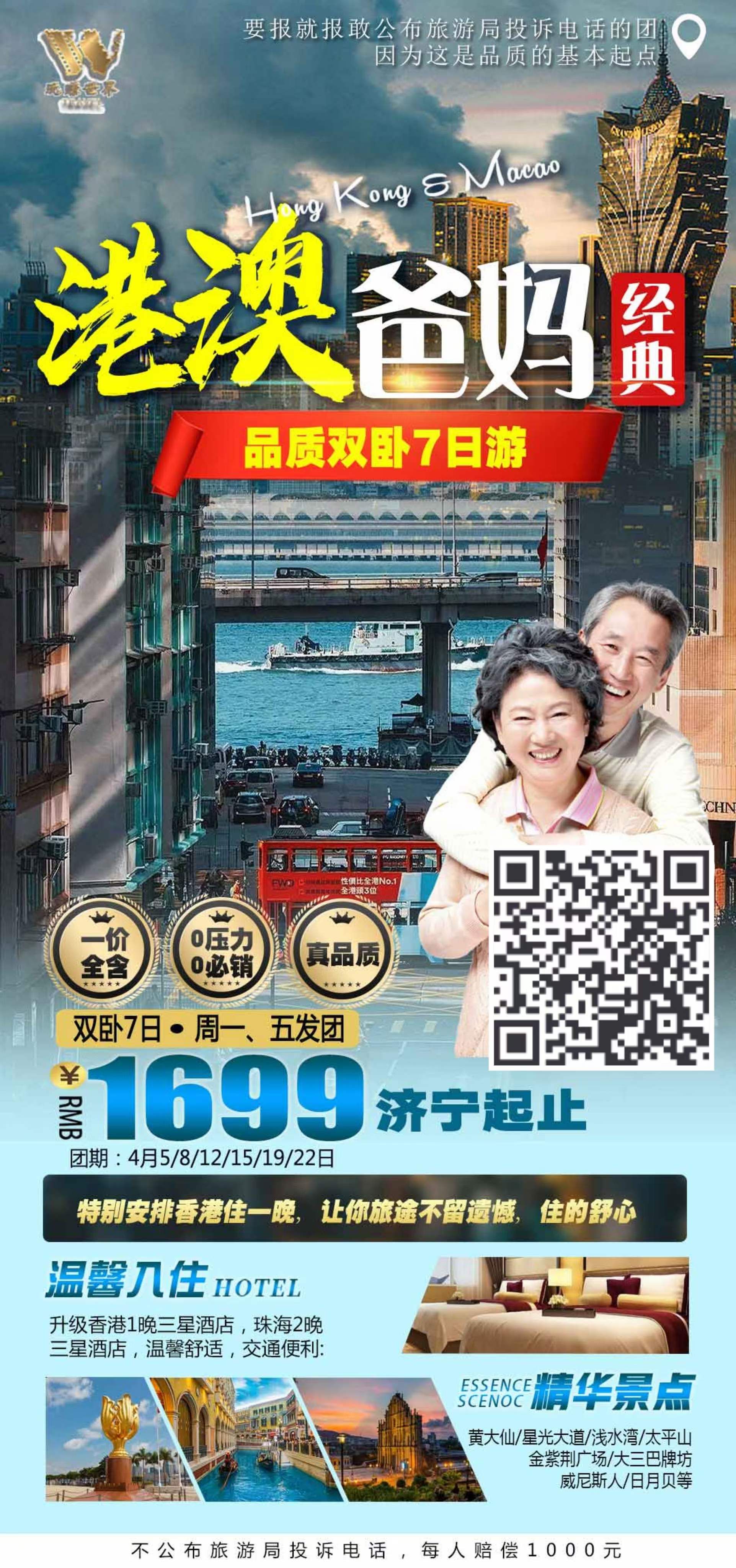 【港澳爸媽經(jīng)典雙臥7日游】 濟(jì)寧起止 2024-4-8 本文被閱讀 768 次
