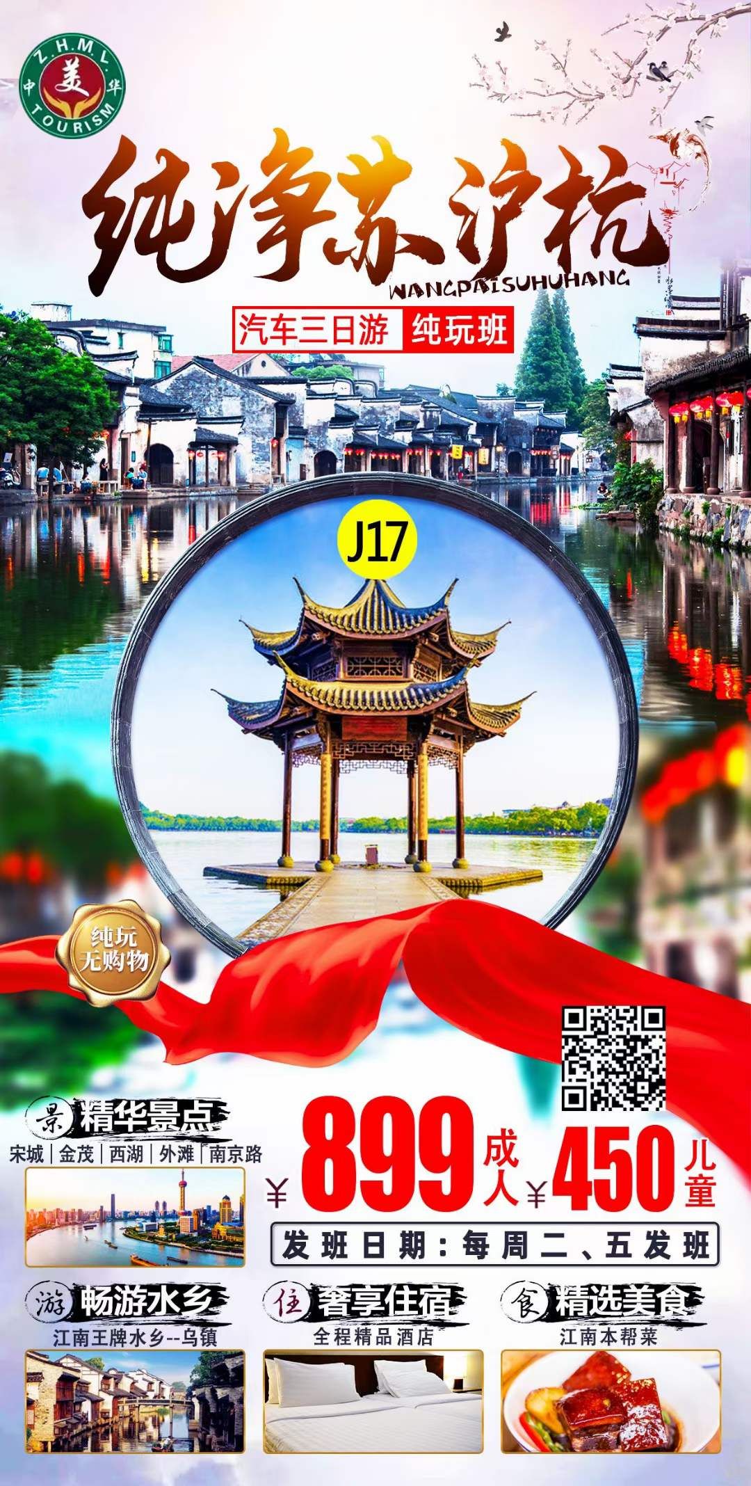純凈之旅蘇滬杭大巴三日游 2024-5-9 本文被閱讀 815 次