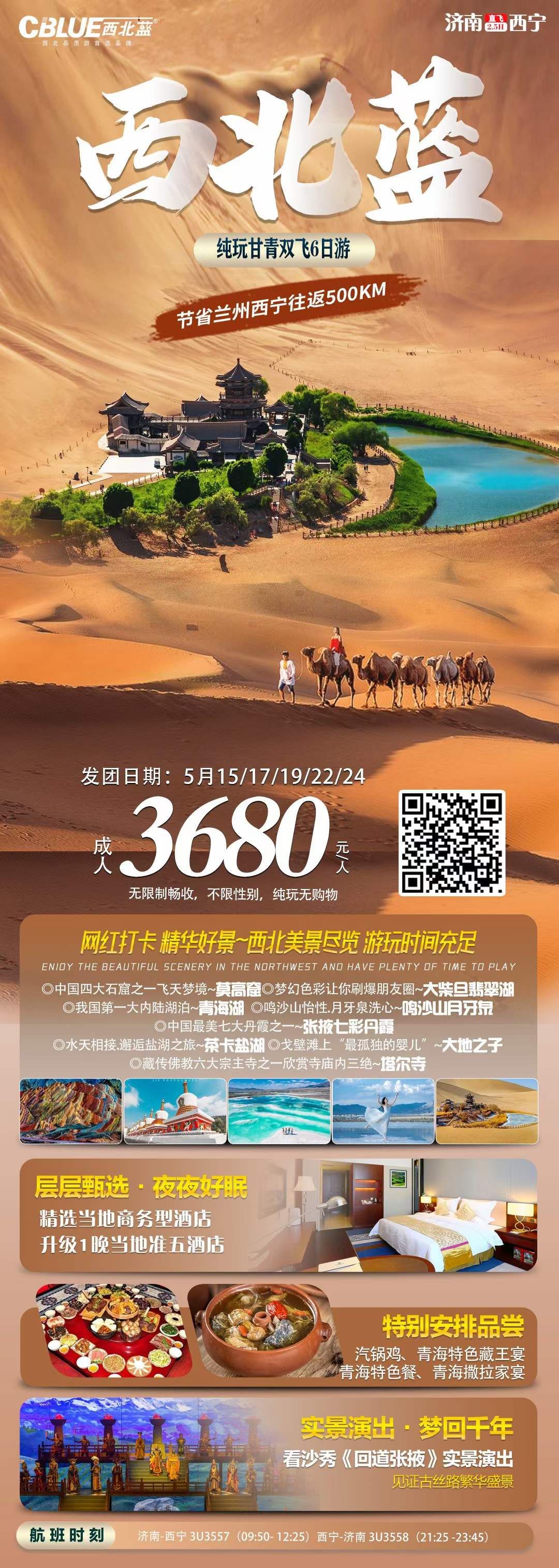 【西北藍(lán)】山東成團(tuán)青甘純玩雙飛6日游 2024-5-16 本文被閱讀 542 次
