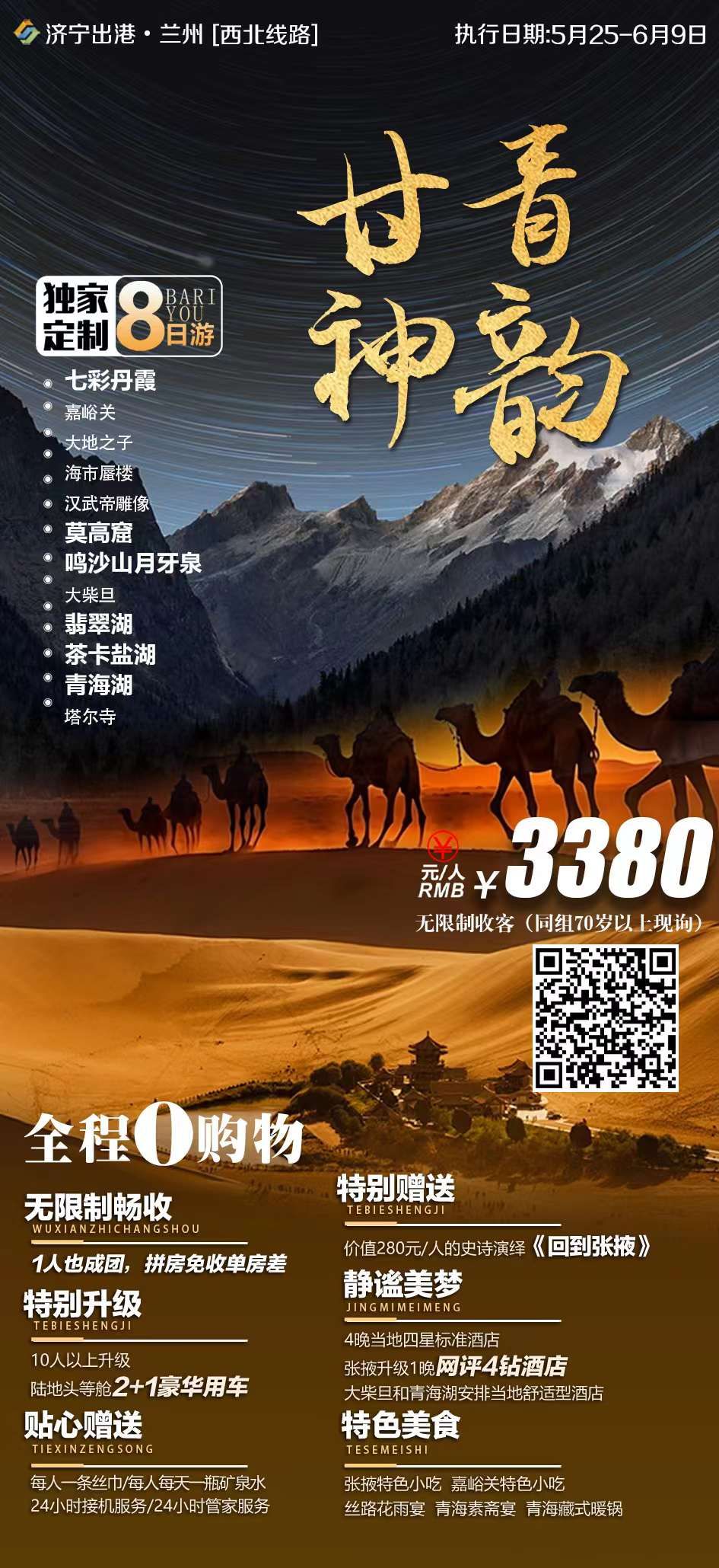 濟寧出港•蘭州【甘青神韻】西北環(huán)線 2024-5-25 本文被閱讀 878 次