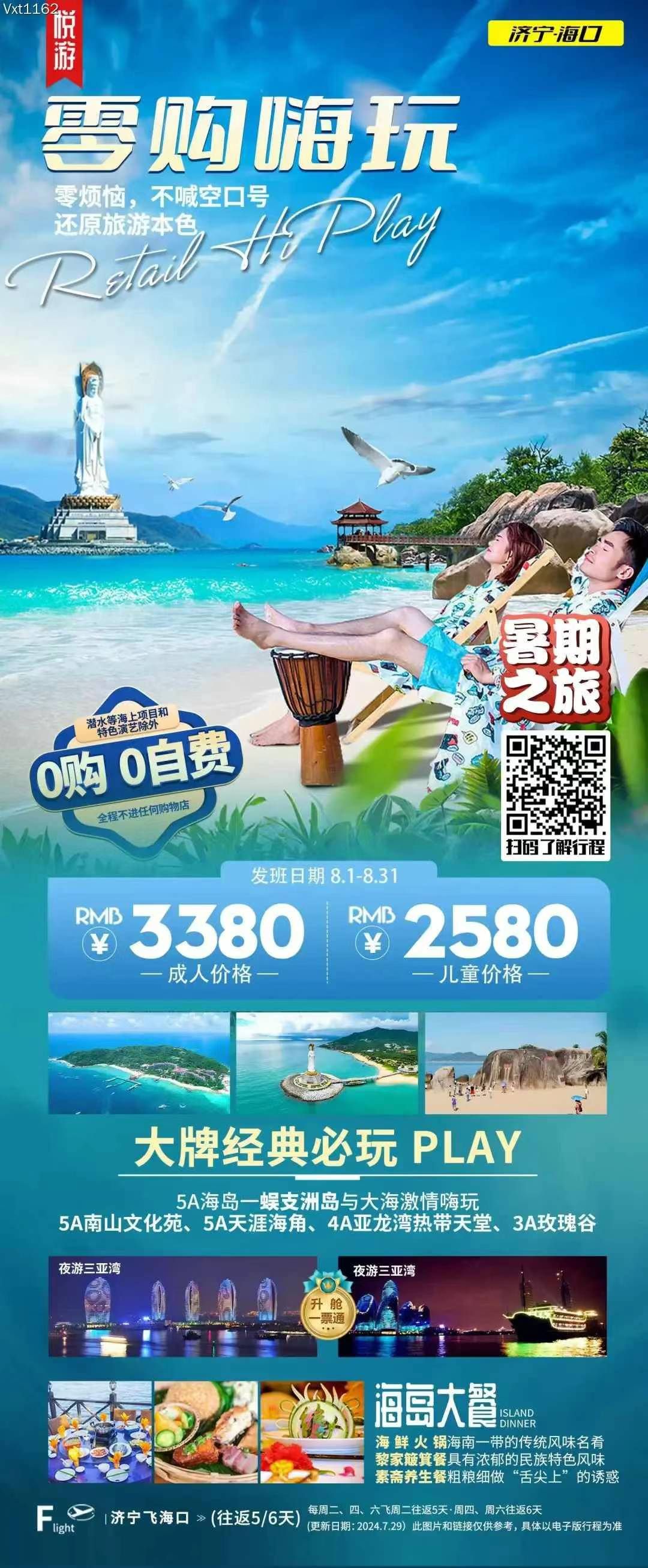 濟寧飛海口 | 周邊地區(qū)含接送 2024-8-2 本文被閱讀 718 次