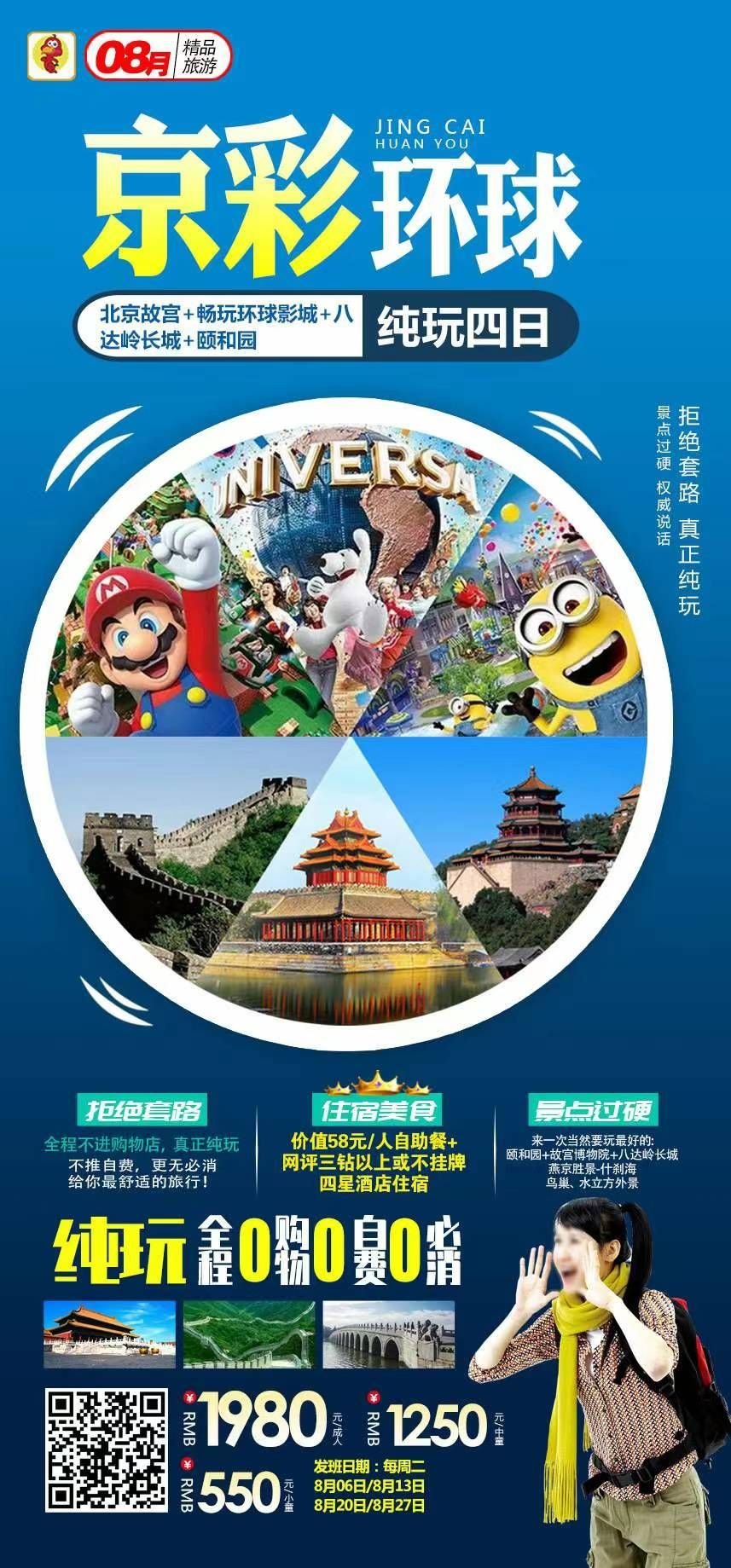 北京京彩環(huán)球大巴四日游 2024-8-4 本文被閱讀 688 次