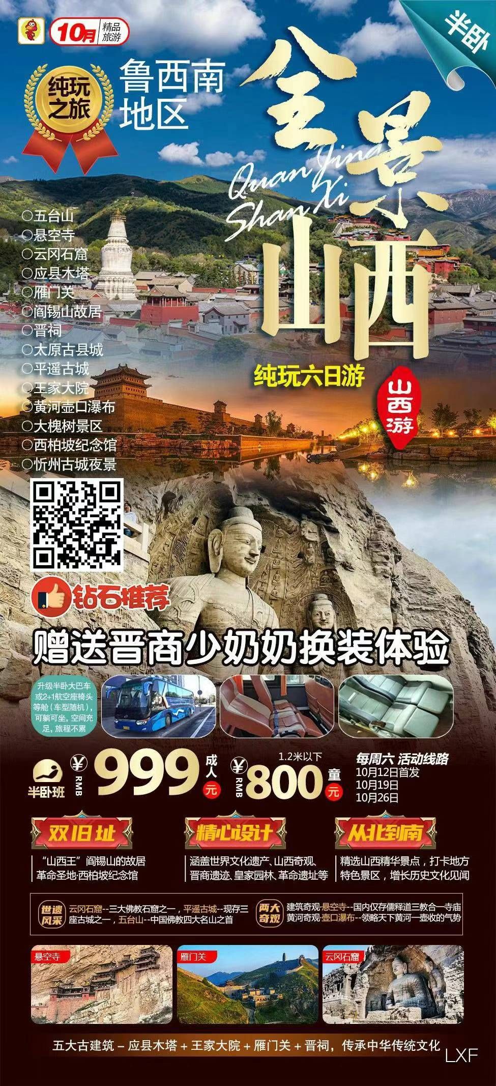 山西全景半臥大巴六日游 2024-10-21 本文被閱讀 643 次