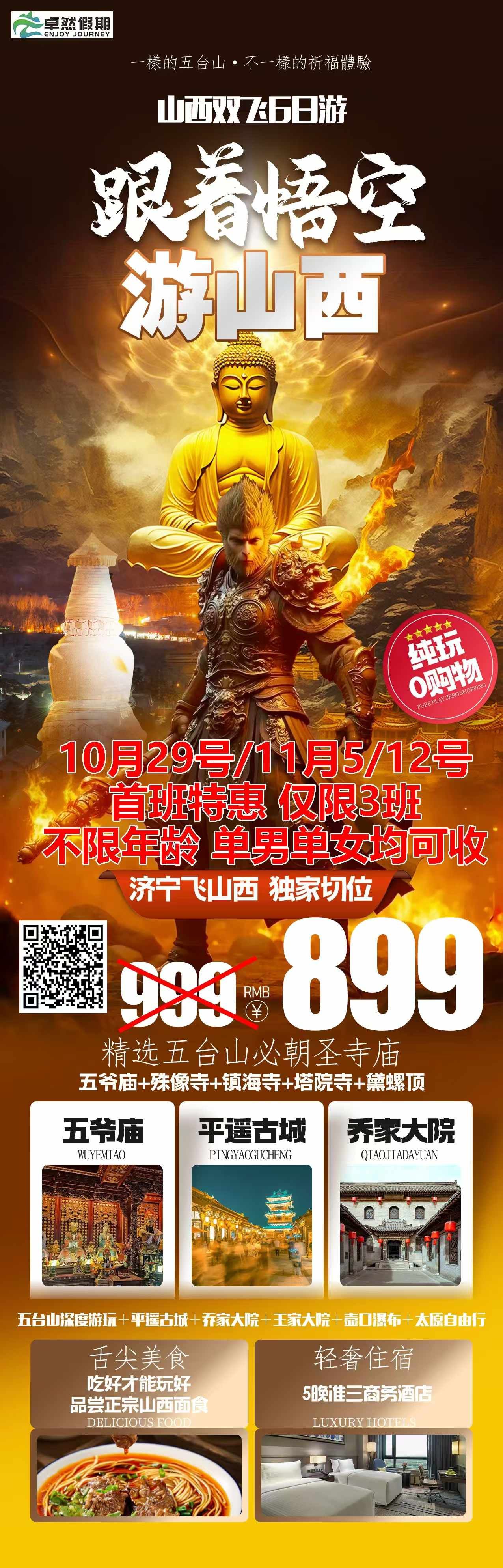 899元濟(jì)寧直飛太原五日游 2024-10-23 本文被閱讀 642 次