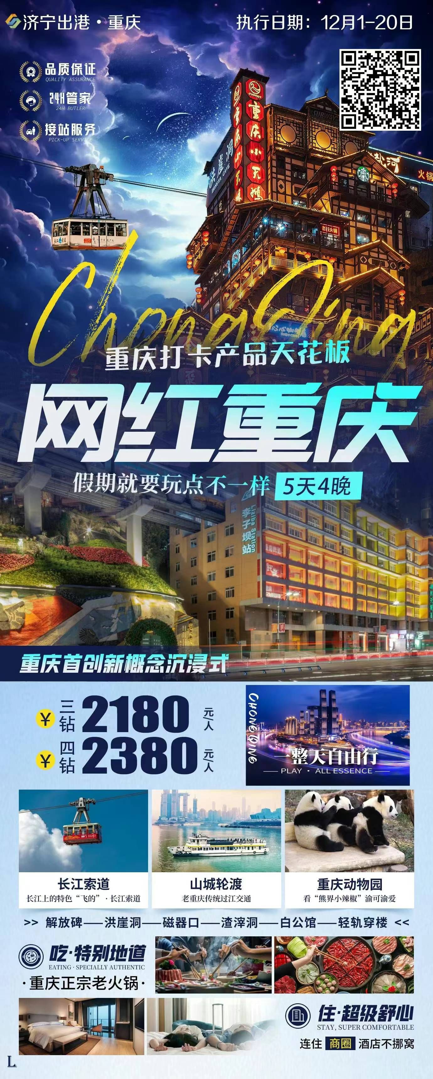 濟寧出港•網紅重慶雙飛5日半自由行 2024-12-9 本文被閱讀 583 次