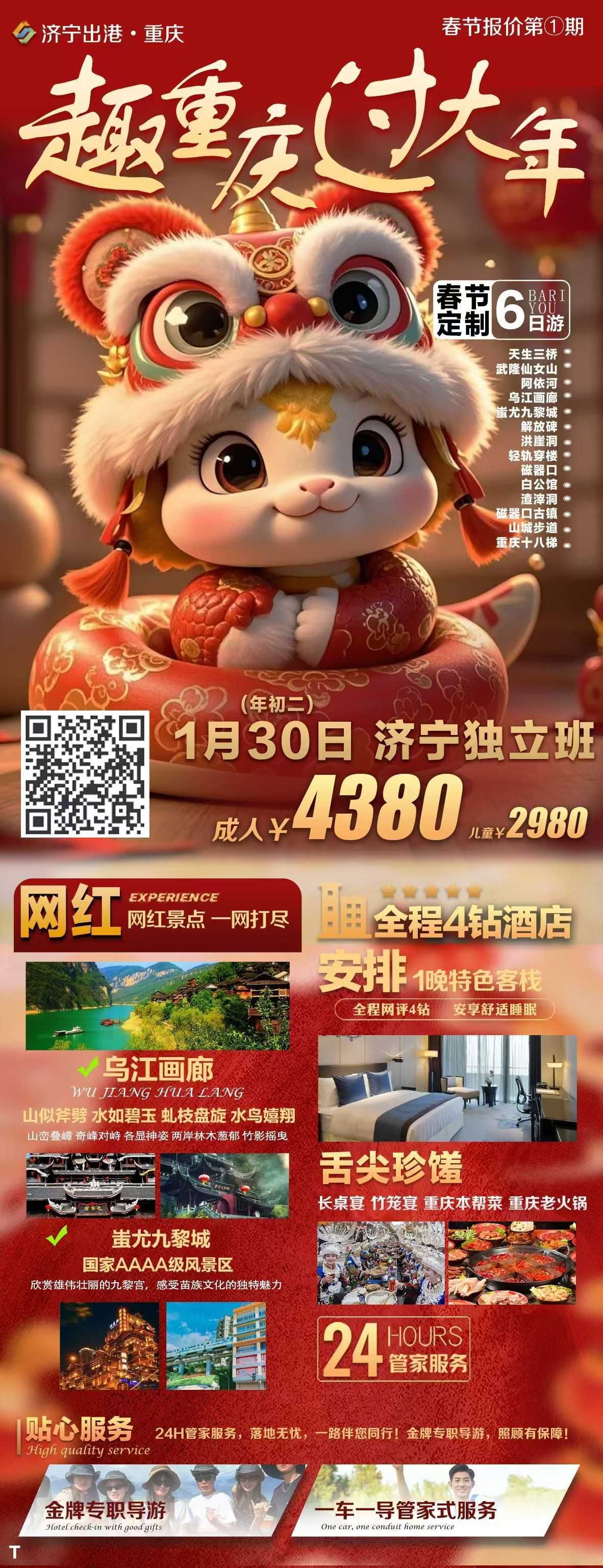 趣重慶-過大年雙飛6日游 2024-12-28 本文被閱讀 400 次