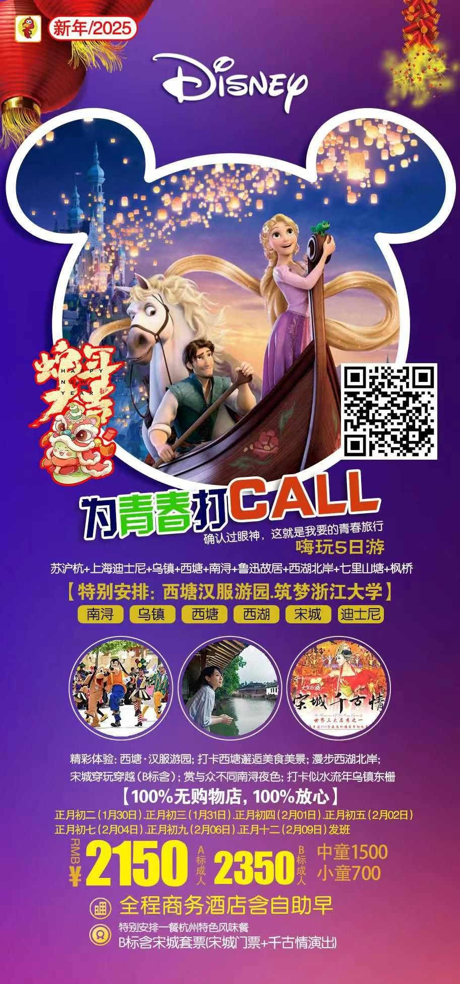 蘇滬杭/迪士尼大巴五日游 2025-1-2 本文被閱讀 428 次