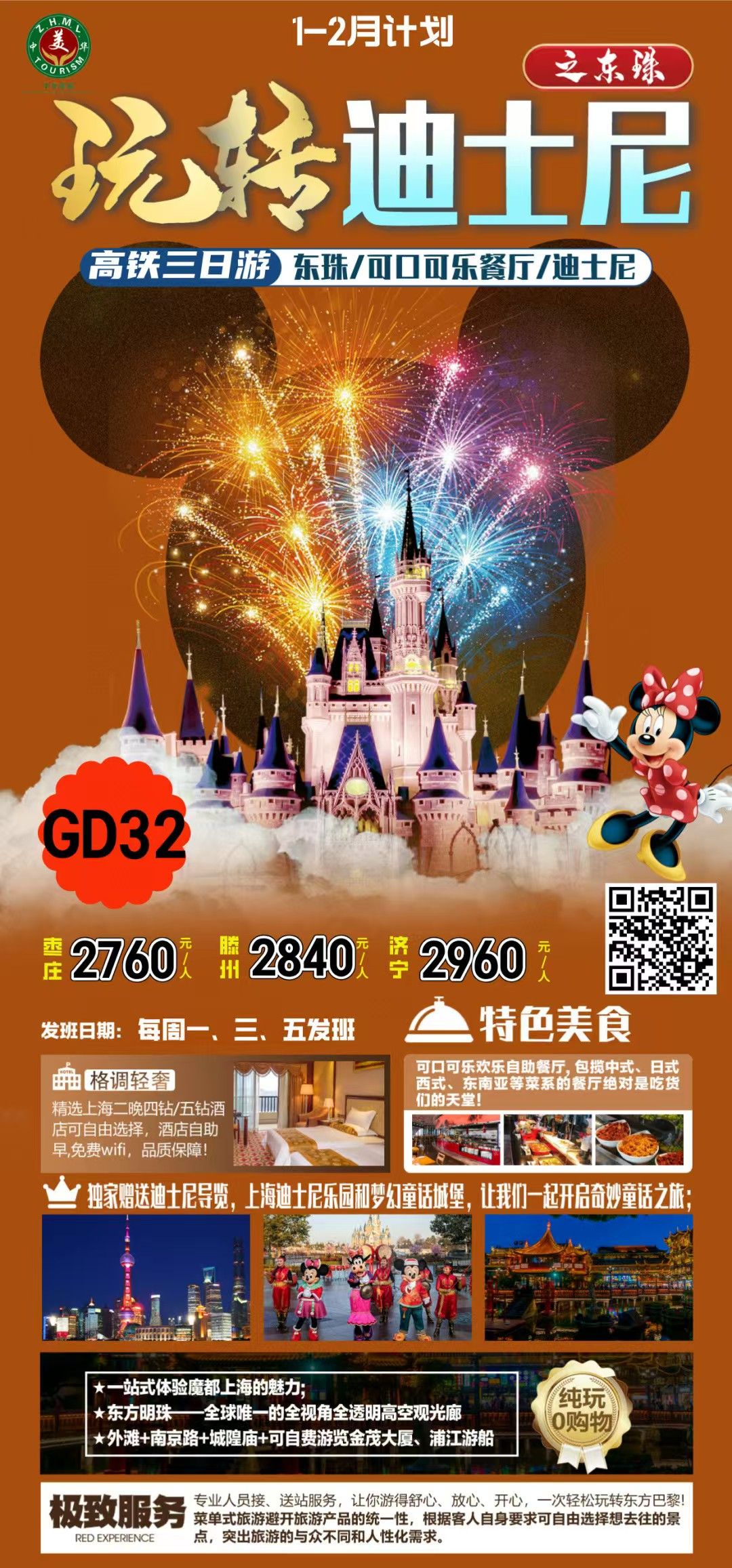 迪士尼+東方明珠+可口可樂(lè)餐廳高鐵3日 2025-1-9 本文被閱讀 504 次