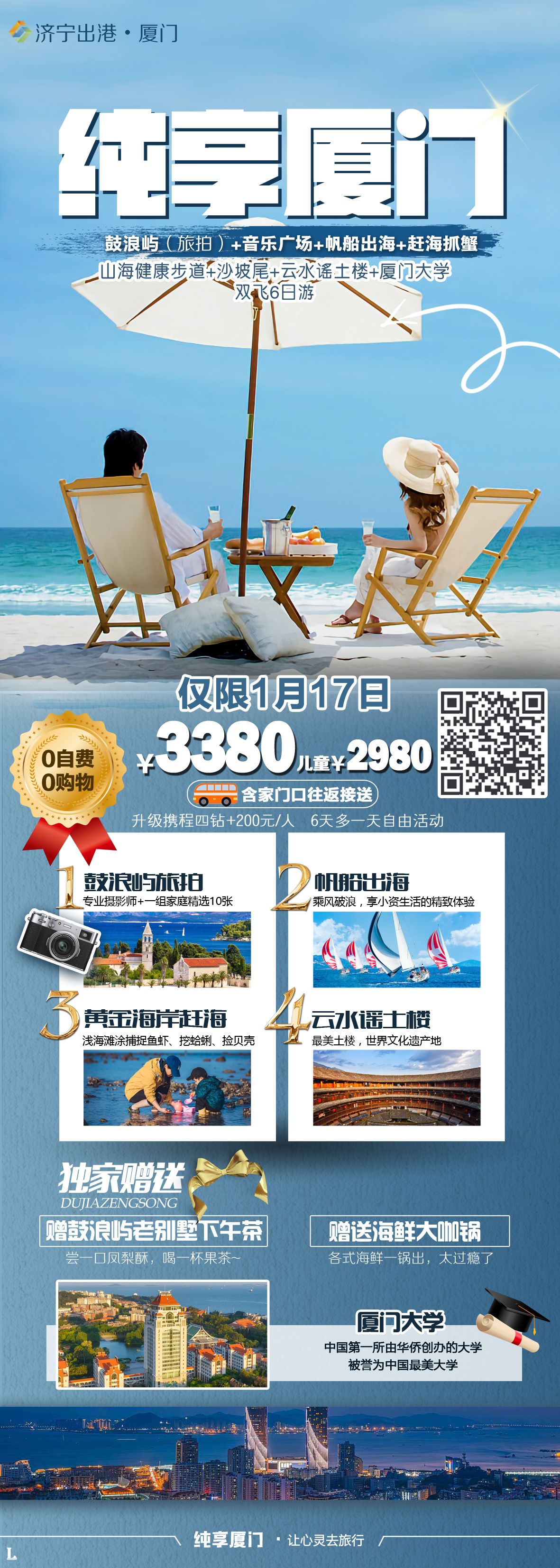 濟(jì)寧出港•純享廈門(mén)6日游 2025-1-10 本文被閱讀 473 次