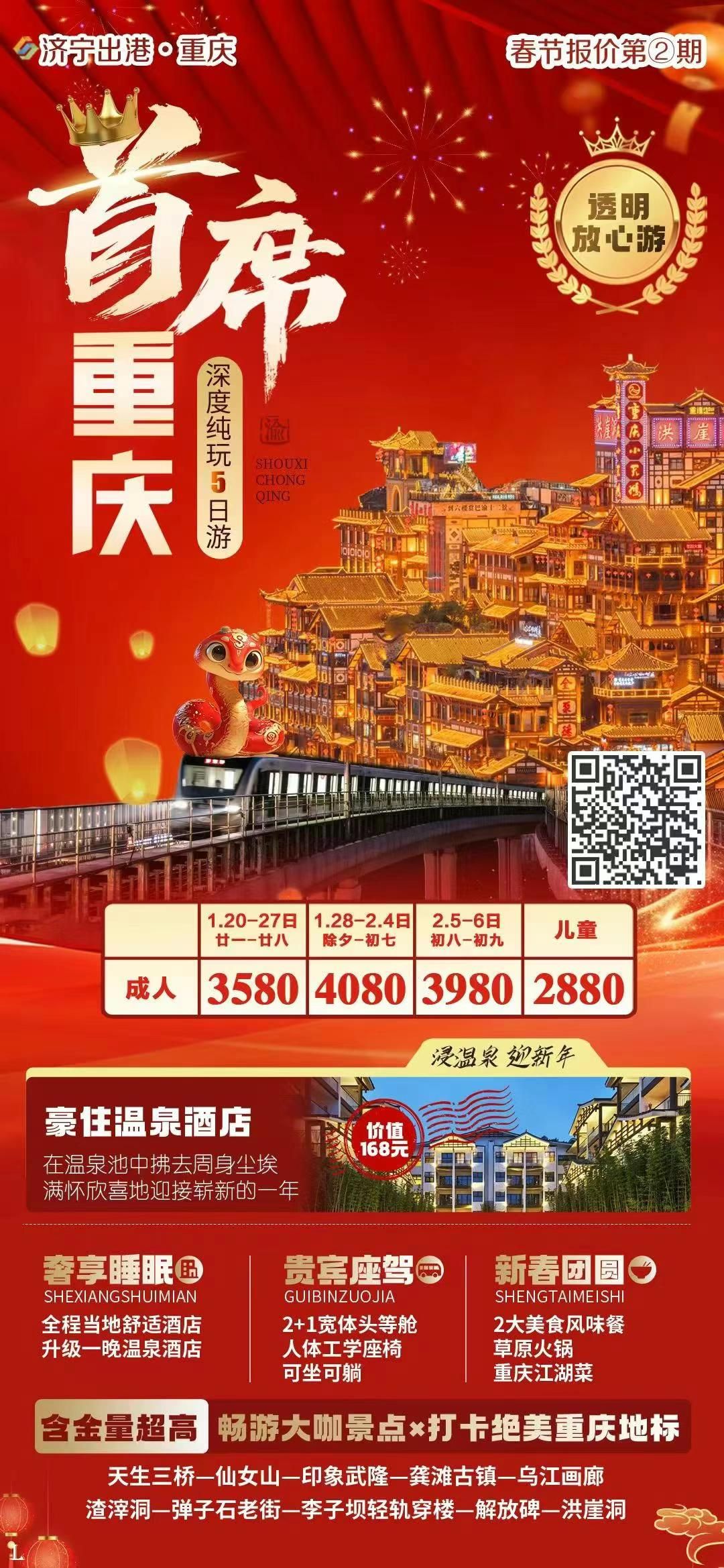 春節(jié)首席重慶雙飛五日游 2025-1-18 本文被閱讀 463 次