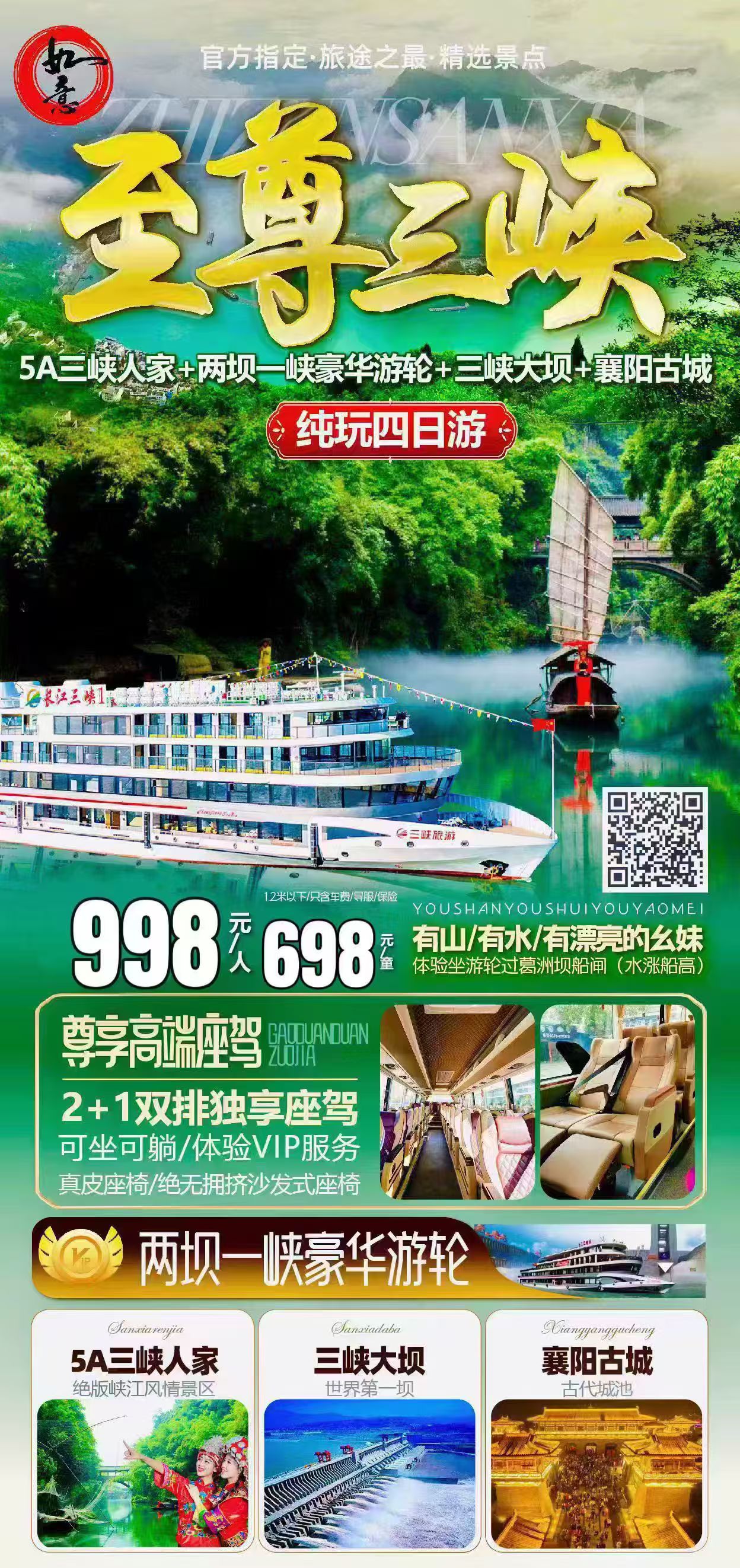 三峽人家+兩壩一峽豪華游輪大巴四日游
