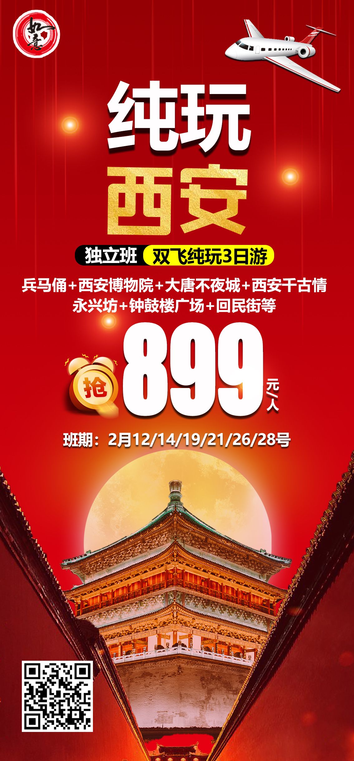 899元純玩西安雙飛三日游 2025-2-11 本文被閱讀 463 次