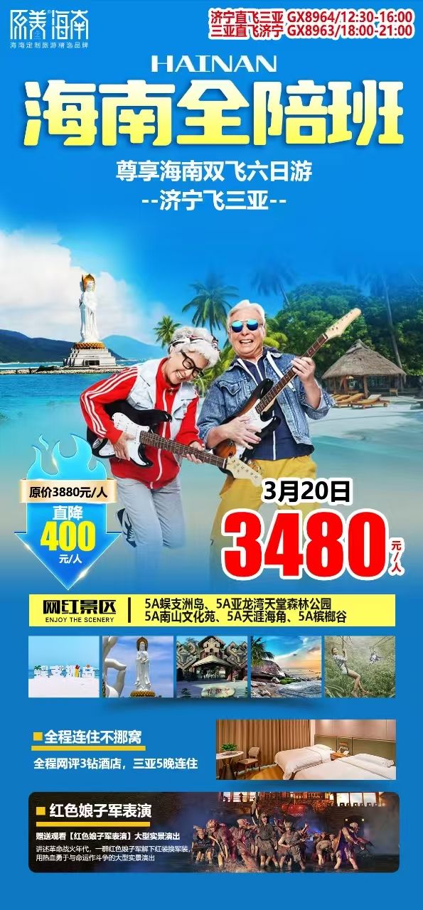 海南全陪班雙飛六日游 2025-3-15 本文被閱讀 594 次