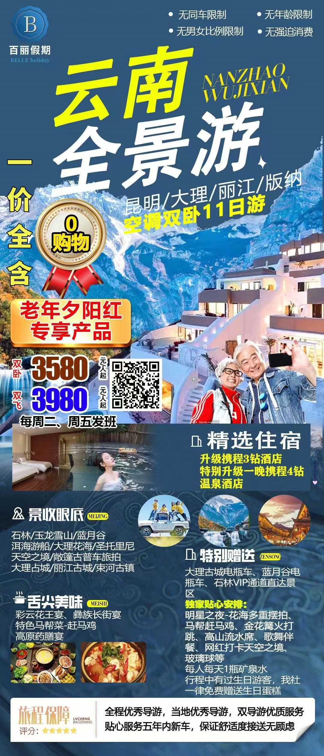 昆明/大理/麗江/西雙版納雙臥11日游 2025-4-19 本文被閱讀 310 次