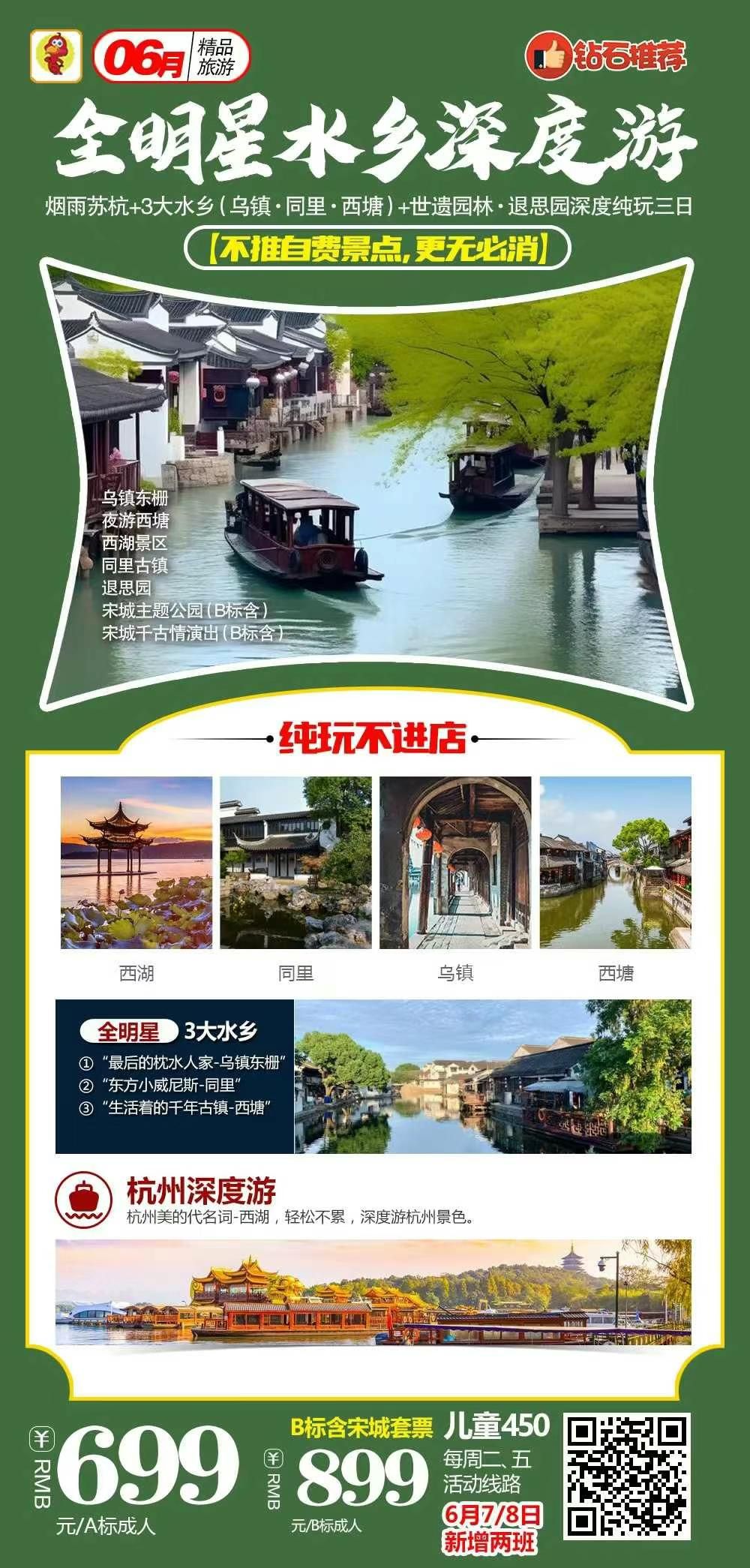 全明星水鄉(xiāng)蘇杭3天 2025-6-1 本文被閱讀 249 次