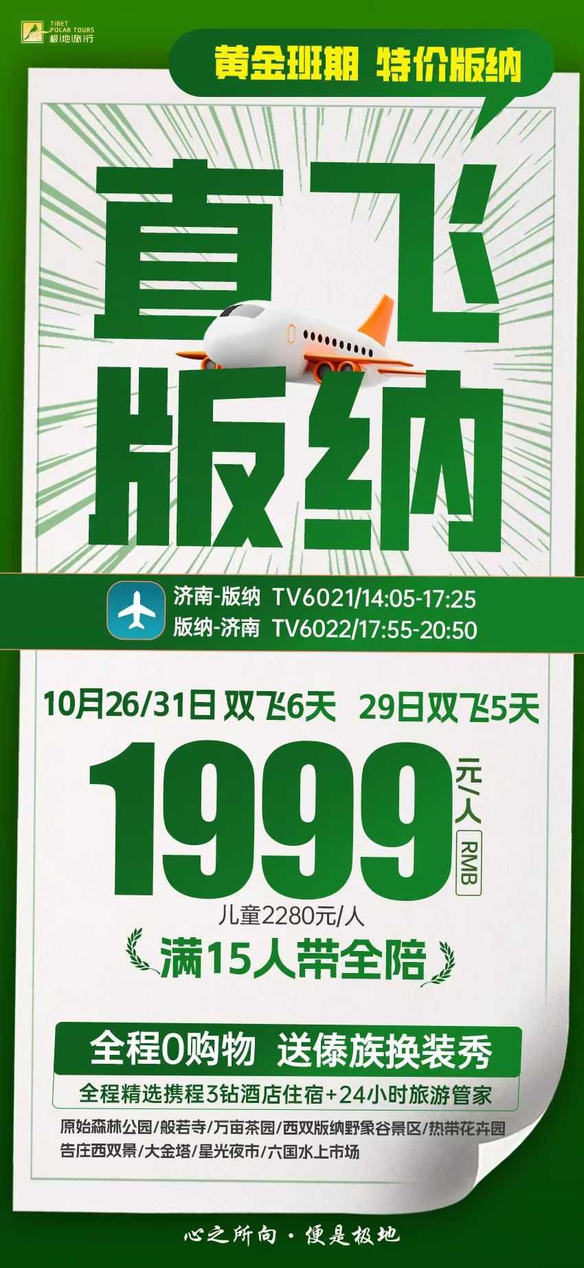 1999元濟(jì)南直飛版納雙飛五/六日游 2025-10-22 本文被閱讀 120 次
